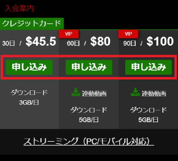 | ダウンロード制限(1日あたり) | ・一般会員:3GB ・VIP会員:5GB |