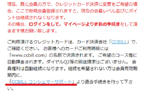 決済会社のCCBILL社のページが開きます。最初に英語ページが開かれるかもしれませんが、上部で日本語に変更できます。