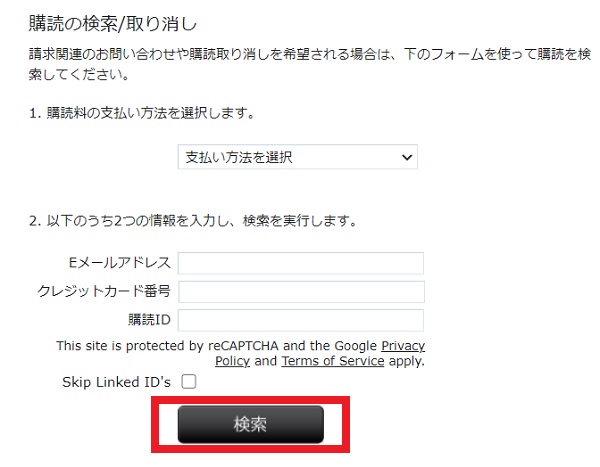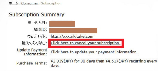 購読の取り消しの項目の契約キャンセルのリンクをクリックしていきます。