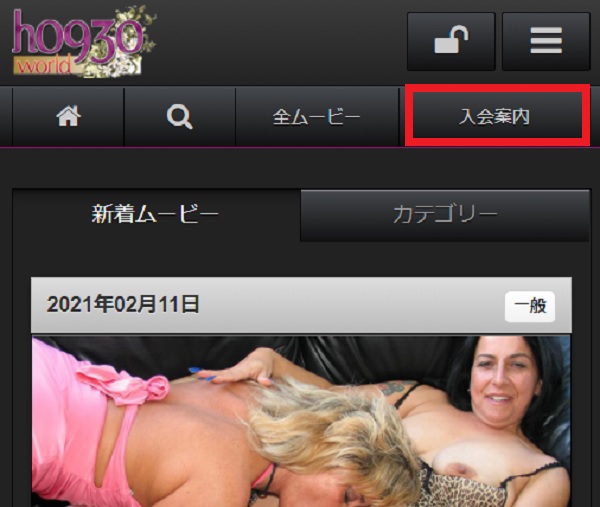 ここではスマホから操作した場合の入会方法を載せておきます。どのページにアクセスしても右上のメニュー内に「入会案内」と表示されているので分かりやすく、パソコンからでも手順は変わりません。