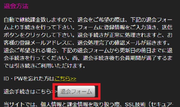 エッチな0930ワールドのサービスを停止したい場合は、「入会案内」の下の方から退会フォームに進めます。その後は簡単なアンケートに答え、退会を確定させると完了メールが届きます。